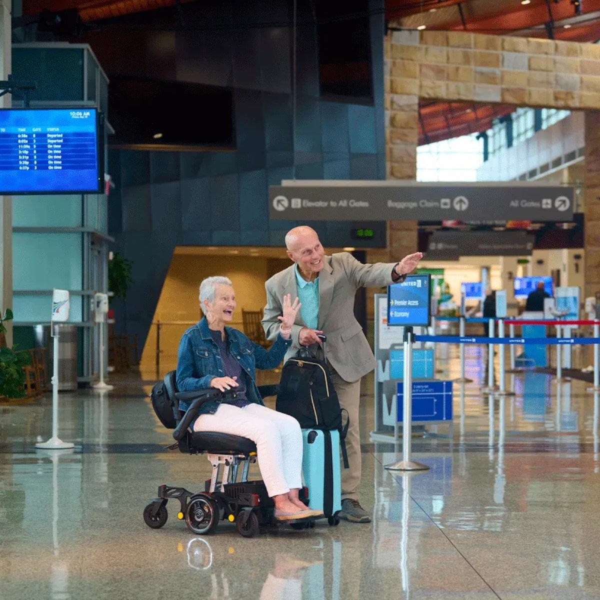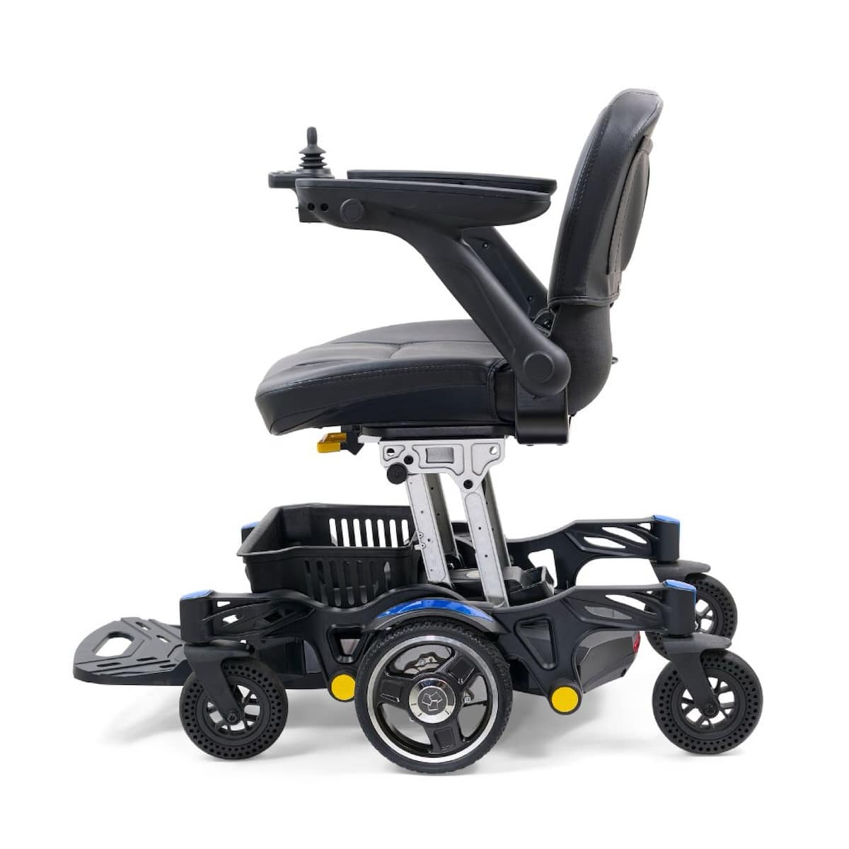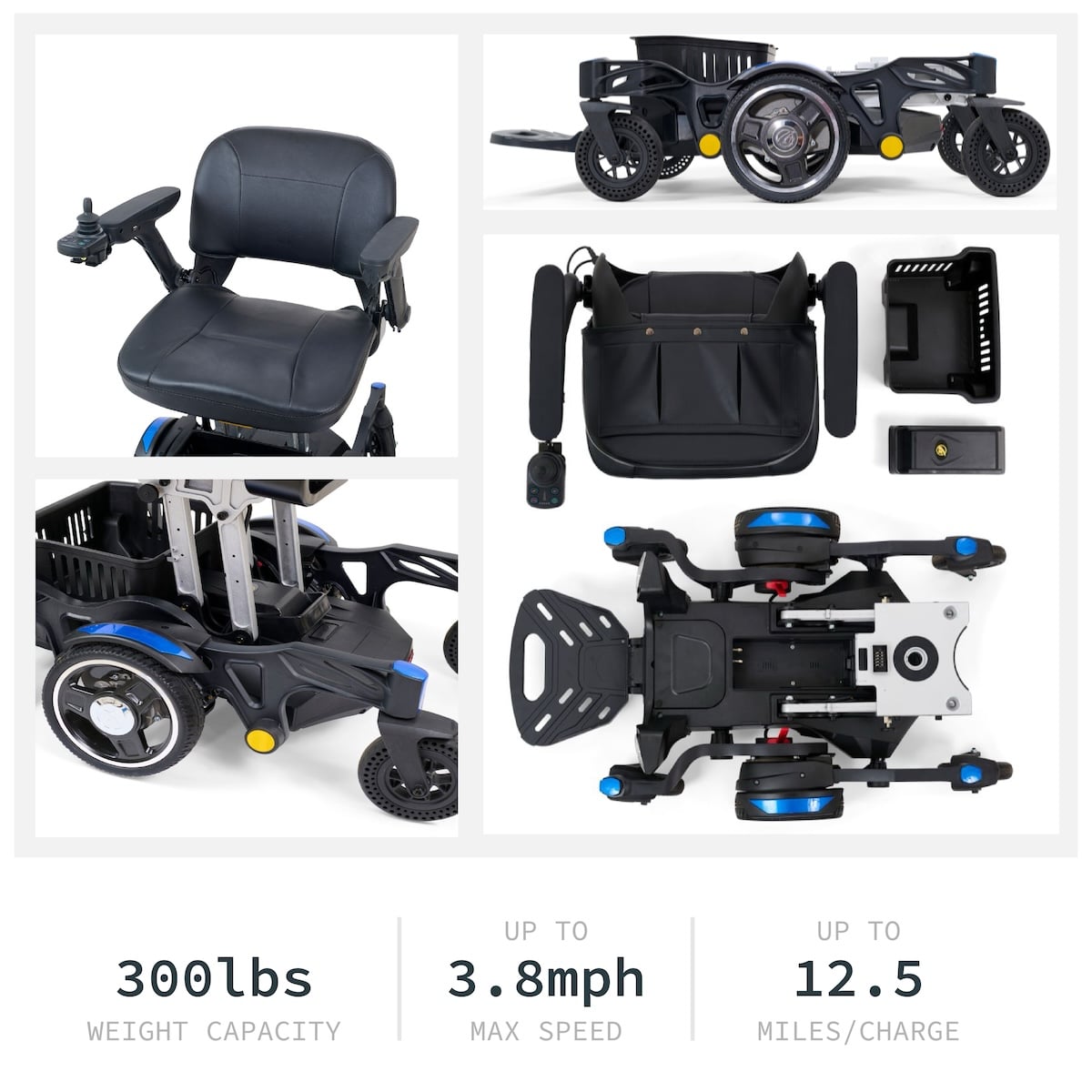 Folds to a slim 10” height for easy storage and transport. Heaviest piece weighs only 46 lbs. (without seat and batteries).Exceptional Maneuverability