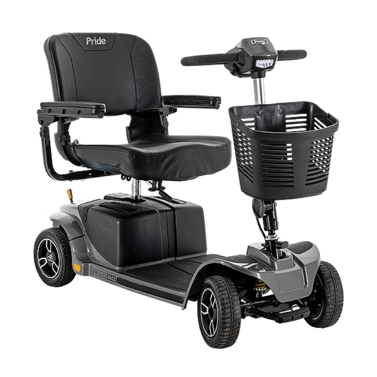 Request This ProductThe Revo® 2.0 4-Wheel Scooter delivers rugged durability with modern convenience. Built with Comfort-Trac Suspension (CTS) and flat-free, non-scuffing tires, it offers a smooth ride across varied terrains such as grass, gravel, and carpet. Despite its solid, heavy-duty construction and 400 lb. weight capacity, the Revo 2.0 disassembles quickly into five lightweight pieces with Pride’s feather-touch disassembly system, making transport simple. With speeds up to 5.2 mph, a driving range of up to 17.8 miles, and premium touches like a USB charging port, durable rear bumper, and LED lighting, this scooter redefines mobility for everyday adventures and travel alike.
